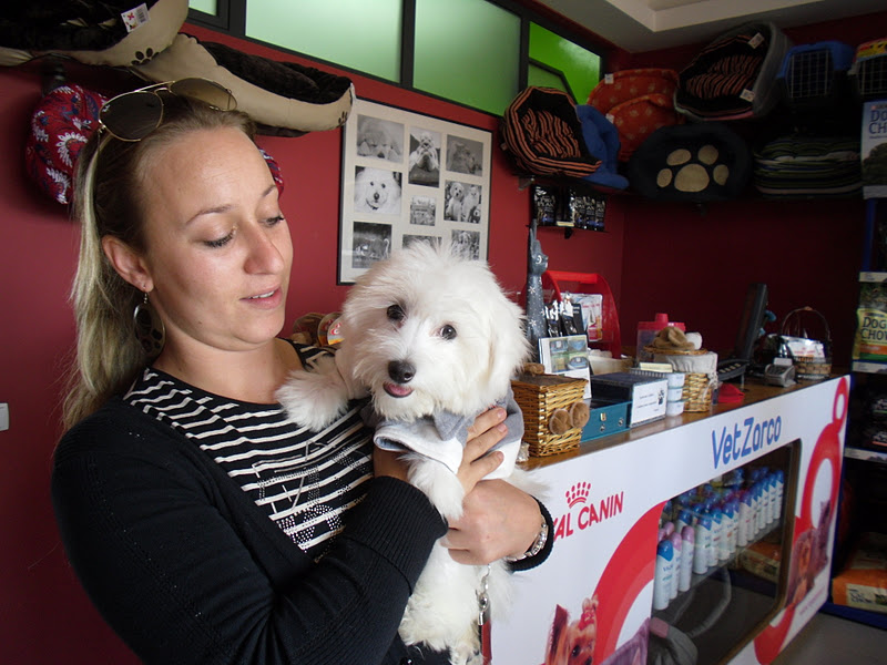 PYPO um maltês bébé muito bonito,comportou-se bem no seu primeiro banho e a dona fiz umas compras!!!!!